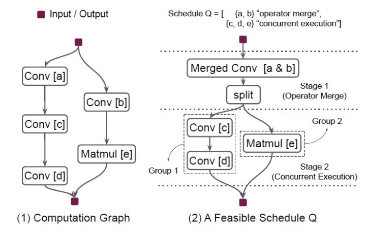 2.作者提出了一种动态规划算法以寻找高度优化的调度以提高多算子并行。这种算法是平台无关的,可以作为通用技术应用于主流的深度学习平台TensorFlow和TVM。