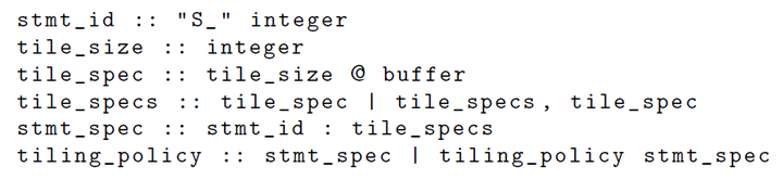 Tile size的选择也是一个非常有意思的topic,目前的compiler有几种常用的方法:基于类型使用程序默认的tile size;或者将这一个过程委托给用户,让用户在开发算子schedule模板时来设置tile size的大小。为了更好的适配多面体模型,AKG为tile size专门提出了一个specification language。
