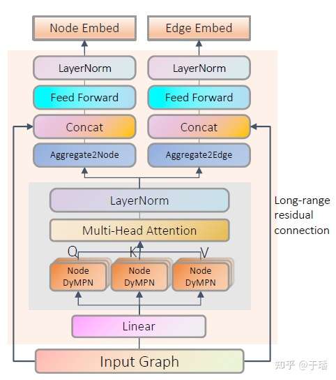 另外,远程残差连接(Long-range residual connection)将输入特征的初始节点/边特征信息直接连接到Gtransformer的最后一层,而不是原始transformer架构中的多个短层残差连接。这样有什么好处呢,1)和普通残差连接一样,可以通过减轻梯度消失问题来改进训练过程;2)远程残差连接可以缓解消息传递过程中的过度平滑问题。