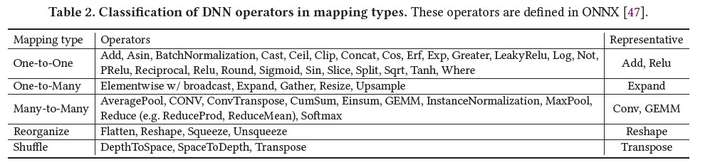 对于算子类别,本文作者将其分为One-to-One,One-to-Many, Many-to-Many, Reorganize, Shuffle五类,具体如下:
