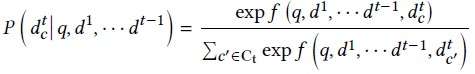 在多跳检索的训练中,每一跳路径的优化目标如图6所示。通过rank loss计算,希望在所有训练路径排序中,最大化当前正确路径(d^1,…,d^(t-1),d_c^t)概率。在检索模型的训练中,负样本的选取十分重要。微软先前的工作[2]指出,“容易”的负样本训练loss越小,梯度越小,对于训练收敛的帮助也很小。检索模型的训练收敛十分依赖于负样本的“信息量”,即难易程度。