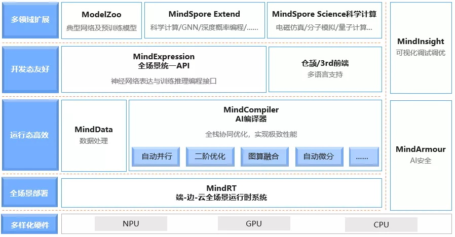 MindSpore作为全球AI开源社区(https://gitee.com/mindspore/mindspore),致力于进一步开发和丰富AI软硬件应用生态。