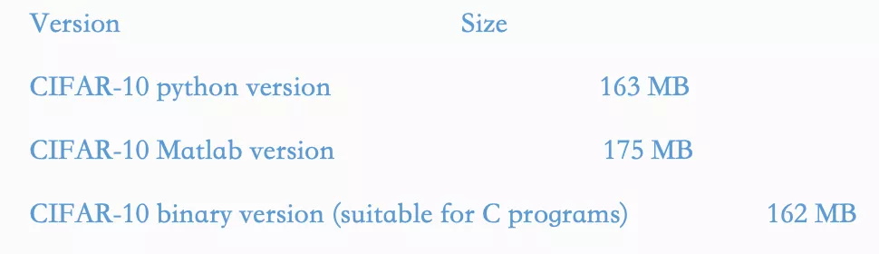 CIFAR-10数据集的原文连接中包含三种类型的数据集,这里可以根据自己的需求进行下载。这里我们使用python版本数据集。