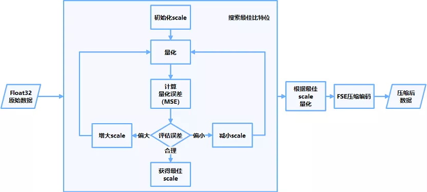 针对量化后的模型,同时采用有限状态熵(Finite State Entropy, FSE)对量化后的权重数据进行熵编码,可以进一步获得更大倍率的压缩,最高可达50+倍。