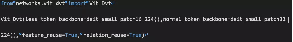 MindSpore上仅需两行代码调用通用动态ViT(DVT)框架,如图7所示,输入两类token的ViT网络,并设置是否开启特征复用和关系复用,完成训练后,如图8所示,即可在ImageNet上获得1.6-3.6倍的推理加速!