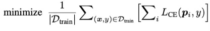 训练网络在所有出口都取得正确的预测结果,训练目标如下式所示。其中和分别代表数据和标签,代表第个出口的softmax预测概率,代表交叉熵损失。