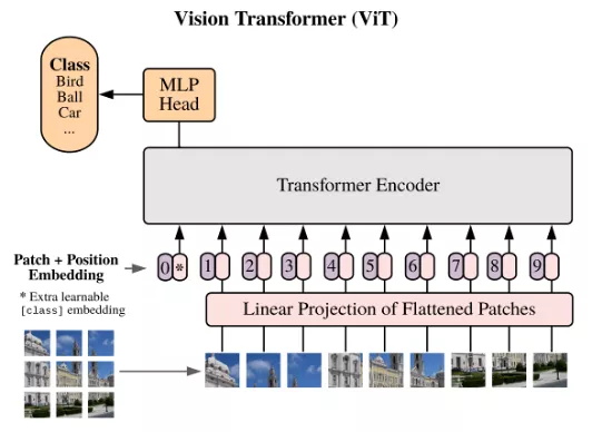 近年来,Google的工作Vision Transformer(ViT)系列视觉模型受到了广泛关注,这些模型通常将图像数据划分为固定数目的patch,并将每个patch对应的像素值采用线性映射等方式嵌入为一维的token,作为Transformer模型的输入,示意图如图2所示。