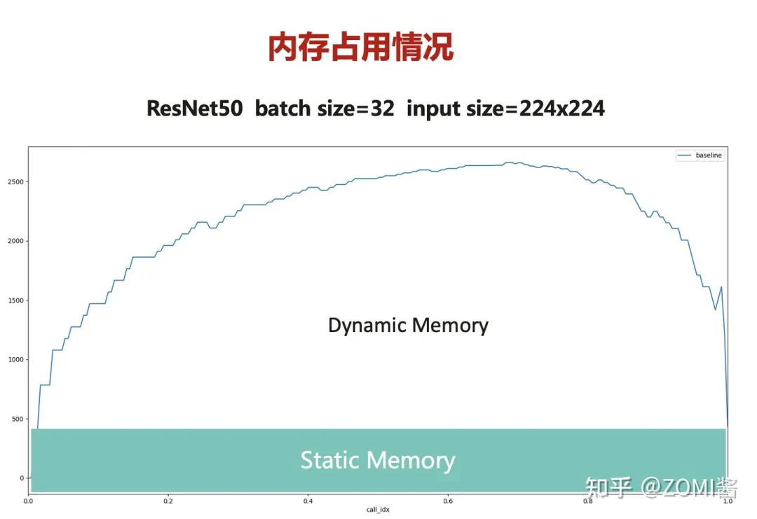 从这里面可以发现,在计算过程的内存峰值,是否遇到内存墙,主要是由动态内存决定。即使绞尽脑汁,降低静态内存意义并不是很大,关键在于降低内存占用的峰值。