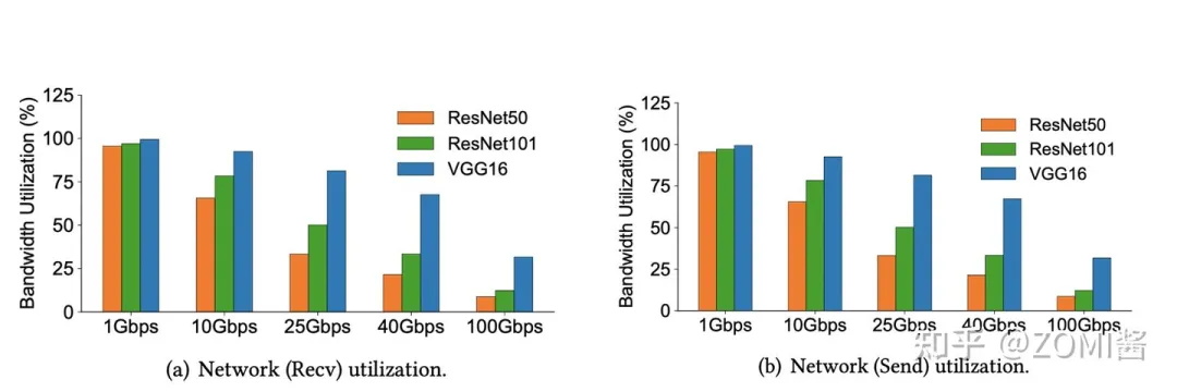 从图中,我们可以看到,随着网络带宽从1Gbps到100Gbps,利用率从接近100%下降到40%左右。随着网络带宽的增加,带宽的利用率将会越来越低,高带宽所带来的收益会遇到瓶颈。