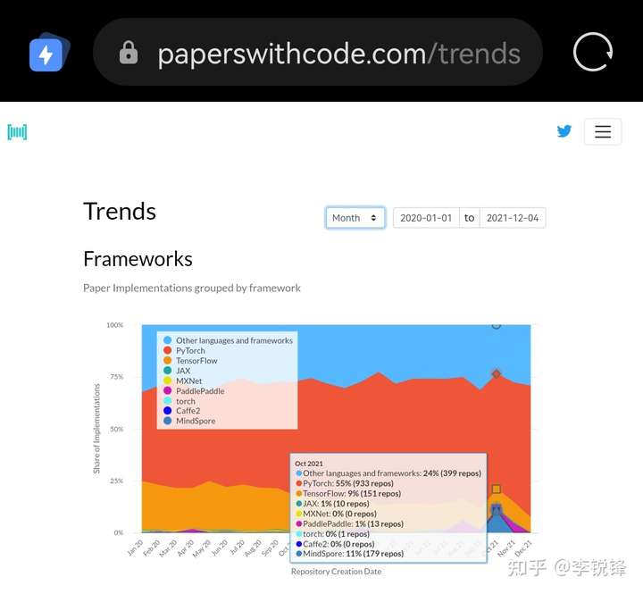 最后告诉各位开发者一个好消息:根据Paperswithcode网站统计,基于MindSpore的AI论文2021年10月份在所有AI框架中占比11%,按月统计进入全球第二,感谢CAAI和各位高校老师支持,我们一起继续努力做好AI科研创新