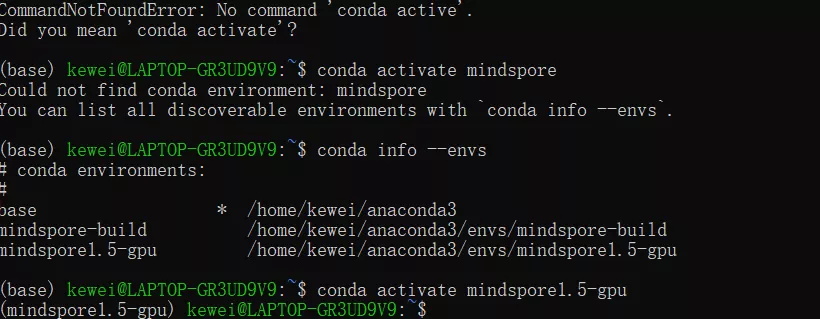差点都忘了自己创建的环境叫什么了,原来叫mindspore1.5-gpu
