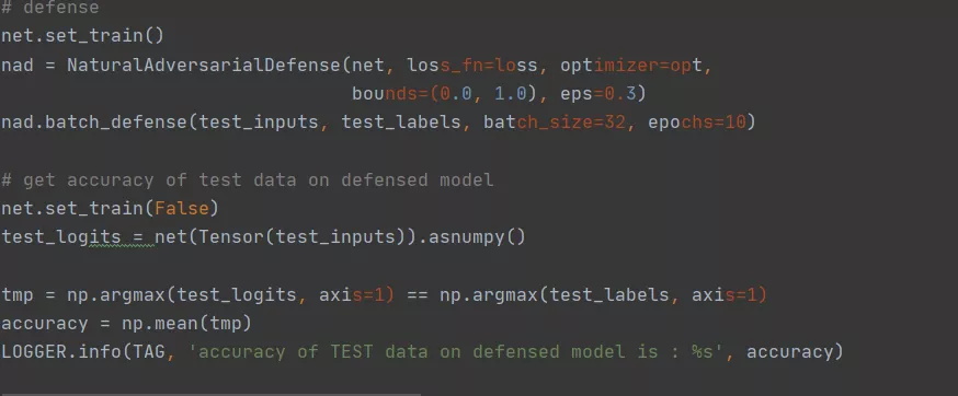 调用MindArmour提供的NAD防御接口(NaturalAdversarialDefense)。