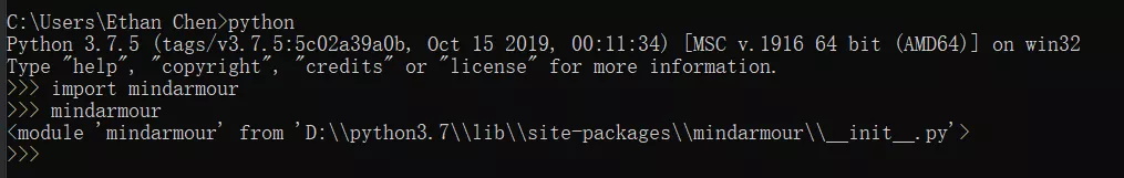 执行如下命令,如果没有报错No module named 'mindarmour',则说明安装成功。