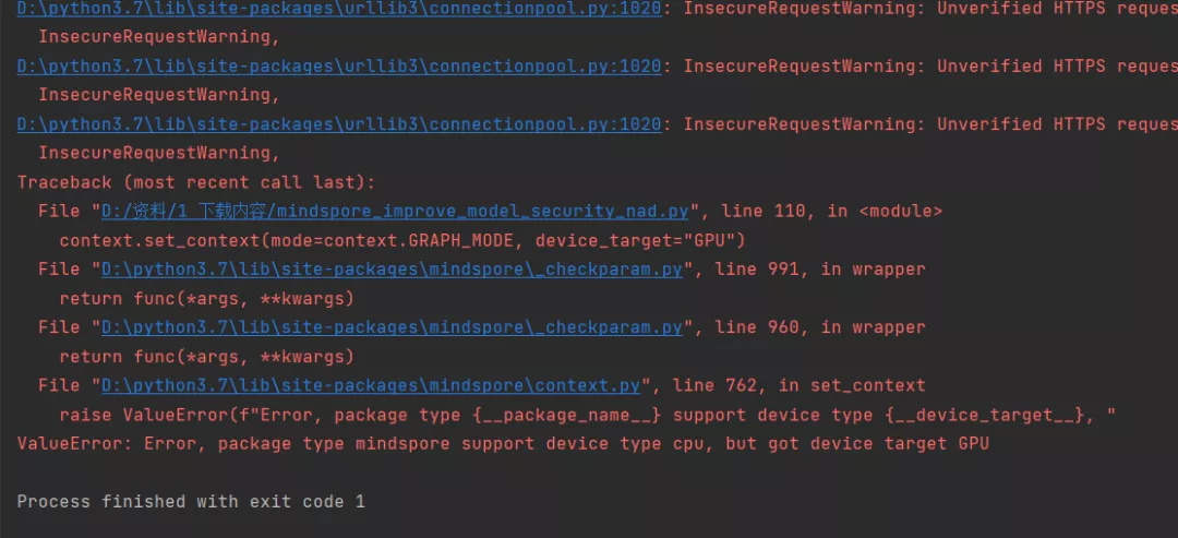 “got device target GPU”。但是仔细分析,我们发现前面这句“support type cpu”。