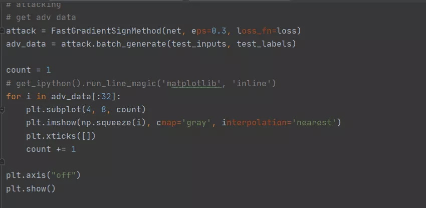 调用MindArmour提供的FGSM接口(FastGradientSignMethod)。