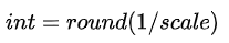 其中,scale默认是float32浮点数,为了能够表示正数和负数,int采用signed int8的数值类型。通过将float32原始高精度数据转换到signed int8数据的操作如下,其中round为取整函数,量化算法需要确定的数值即为常数scale: