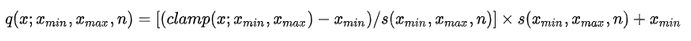 首先对数据根据min和max值进行截断,然后把float数据转换成为int数据,之后再把int数据重新转换成为float数据,该操作会丢失掉float1与float2转换之间的精度差。对于量化感知训练,通过模拟量化操作时候对数据进行规约操作,所以网络模型中每一个tensor数据可以根据下面公式进行封装成为op,得到: