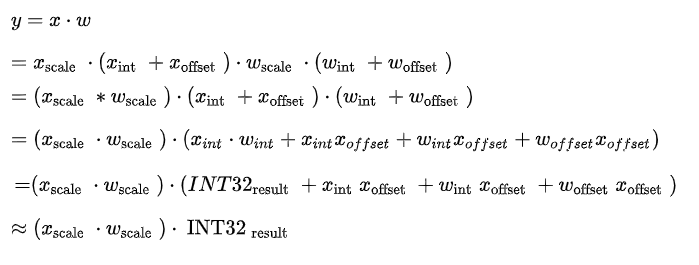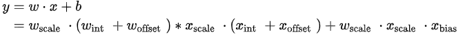 因此反量化需要input和weight的scale。值得注意的是,后面实际的公式约减了