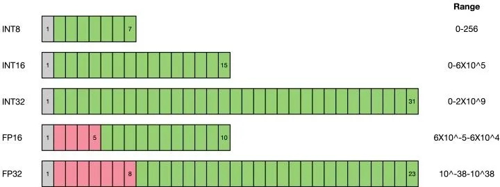 提前从体系结构的考量角度思考量化带来的另一个好处是节能和芯片面积,怎么理解呢?每个数使用了更少的位数,做运算时需要搬运的数据量少了,减少了访存开销(节能),同时所需的乘法器数目也减少(减少芯片面积)。