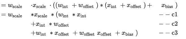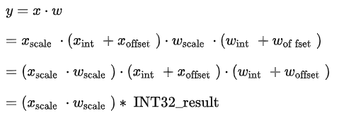 其中, Wint是量化后INT8权值,Xint是量化后INT8数据, Wbias是量化后INT8数据, 是量化后INT32的bias。