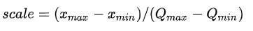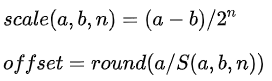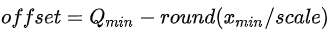 若待量化数据的取值范围为[a,b],则scale和offset的计算方式如下: