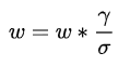 ):对w乘以校正因子。由于每次更新batch参数的 σB的时候,都是使用当前batch的统计数据,这会使得权重参数连带着一起被当前的batch影响,为了避免当前权重数据w的抖动,加入correction校正因子将权重缩放到长期batch统计数据中: