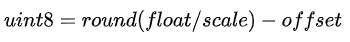 确定后通过原始float32高精度数据计算得到uint8数据的转换即为如下公式所示: