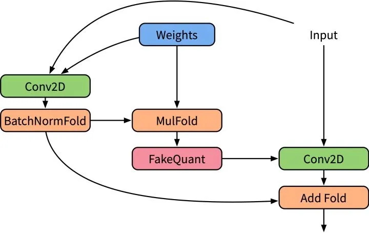 模型开始训练的时候会在fold conv卷积的输出除以correction因子,这样的操作是为了让模型直接去学习正常的BN操作(根据当前的batch进行学习),在学习到一定程度之后,冻结当前的BN不再更新全局delta,然后fold conv卷积的操作中直接作用,并同时修改bias,作为correction_2更新到ADD算子中。