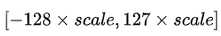 对称的量化算法原始浮点精度数据与量化后INT8数据的转换如下: