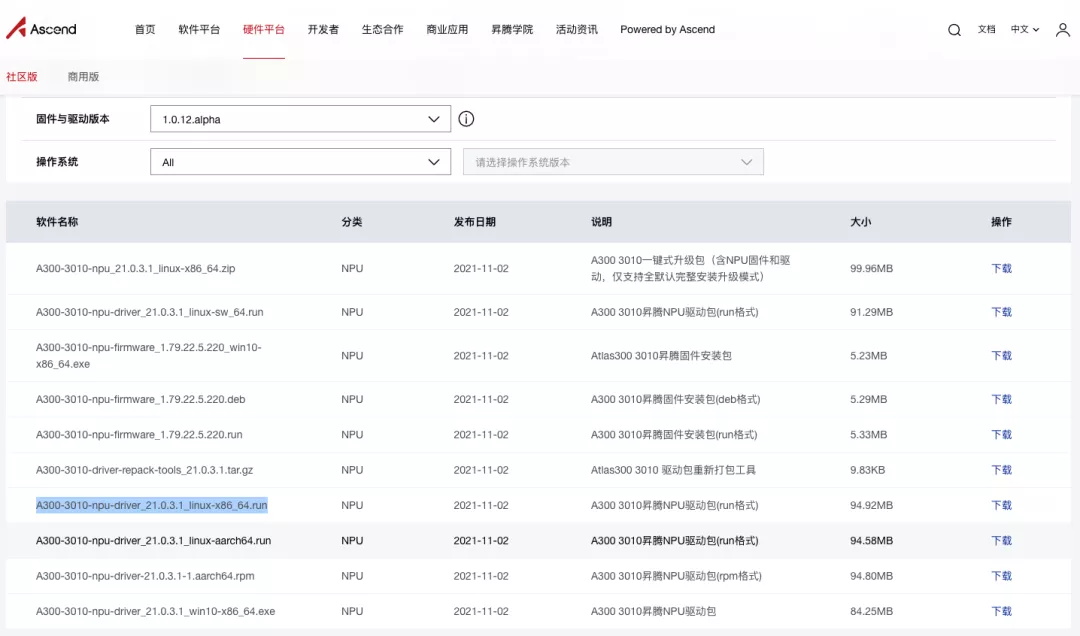 昇腾硬件平台****驱动下载地址: