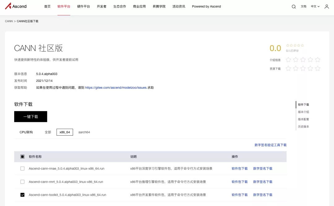 昇腾硬件平台工****具包下载地址: