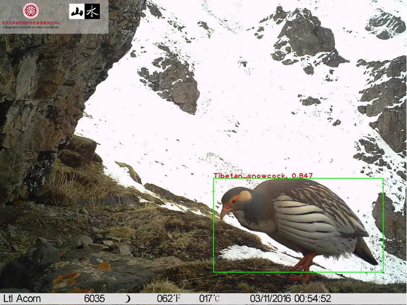 TinyMS新版本的可视化特性的设计初衷来源于我们与山水自然保护中心的合作项目——基于MindSpore实现三江源自然保护区红外相机AI物种识别(**点击标题可查看项目详情)。**通常,在训练完模型后,大多数模型开发人员会采用模型验证工具来计算精度,召回率等指标展现模型效果,但对于非深度学习开发人员来说这些指标并不直观。我们希望让用户通过TinyMS可视化工具直接看到模型推理生成的图片结果。传统的可视化工具依然需要开发人员具备一定的深度学习开发经验,比如数据处理、构建网络、加载模型、执行推理等一系列流程,如果想直观看到图片进行推理后的结果,还需要掌握OpenCV的使用,这些步骤对于非AI开发者用户来说仍较困难,因此,TinyMS提供了一键式可视化推理工具,封装了模型构建等大部分技术细节,用户仅需几个简单的步骤即可实现OpenCV静态图片检测和动态摄像头视频检测,下面展示如何使用静态图像进行检测的可视化推理结果。