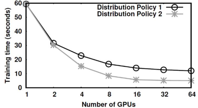 The following figure shows the Wide&Deep model training based on the GPU V100 cluster (batch_size = 16000, and vocab_size = 5860000)
