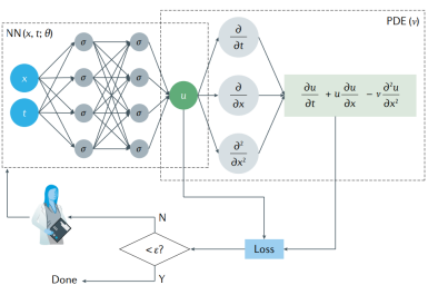 A physical informed model is a type of model that integrates prior knowledge (such as equations/initial boundary conditions) in physics into a neural network. Typical models include PINNs (as shown in figure 2), Deep Ritz, PFNN, and the like. Advantages: No discrete grid is generated. Derivative calculation can be performed based on the automatic differentiation capability of the AI framework to avoid numerical differential discrete errors. This type of model is naturally applicable to inverse problems and data assimilation problems. Compared with data-driven models, this type of model has stronger extrapolation capability and fewer samples. Disadvantages: Lack of network structure design guidance makes it difficult to learn singularity problems. Loss functions contain multiple constraints, making training difficult to converge. Retraining is required when physical constraints change, lacking generalization. Calculation accuracy and convergence lack theoretical assurance.