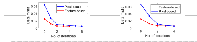 Figure 2 Comparison of convergence speeds of MT inversion (Pixel-based: conventional inversion; Feature-based: our work)