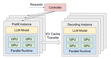 为了解决上述问题,昇思MindSpore2.4版本通过结合MindIE服务化支持PD分离部署。如下图所示,通过将Prefill和Decoding阶段分别部署到不同节点,并结合分布式调度等机制,有效缓解了资源竞争、简化了缓存管理、降低了响应延迟并实现了更均衡的负载分配,推理吞吐量可提升50%以上。