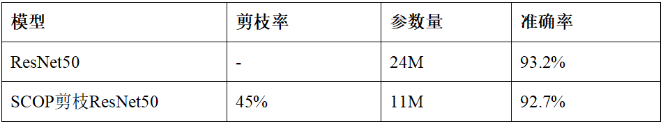 表 SCOP剪枝算法用于ResNet50的CIFAR-10数据集结果