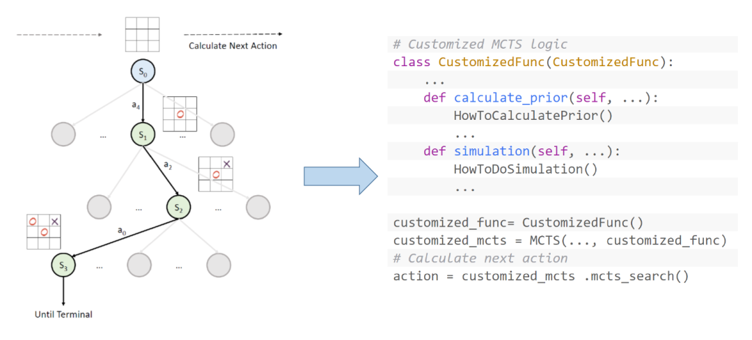 MindSpore Reinforcement v0.5.0提供了通用可扩展的MCTS算法。开发者可以使用Python在强化学习算法中直接调用框架内置的MCTS算法,也可以通过扩展来完成自定义逻辑,框架自动将算法编译成计算图,实现高效执行。