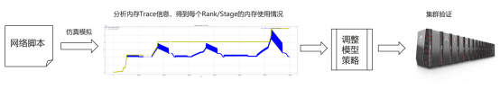 通常在训练时为了提升设备的算力或显存利用率,往往需要反复调试并行策略、重计算、负载均衡等相关超参,对于动辄千卡万卡的大集群来说,这种反复调试成本是非常昂贵的。而昇思MindSpore2.5版本新增支持仿真模拟执行的功能,可以在不占用卡执行的情况下,直接模拟出任意卡的图编译结果以及显存占用情况,如下图所示,用户可以根据模拟执行的显存结果来调整上述超参,调整完后再复用到生产集群上,一键拉起大集群训练,从而减少调试过程中的资源占用,大幅提升调试调优效率。