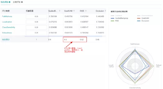 评估体系:面向各种解释方法,给出在具体场景下,选中解释方法在不同度量方法下的解释效果得分,助力用户选择最优的解释方法,从而更好的帮助模型调优。