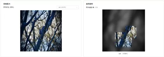显著图可视化和反事实解释:能够为图片分类模型的推理结果,标识影响分类结果的关键特征,方便理解分类依据,帮助分析定位分类错误原因,加速模型调优。