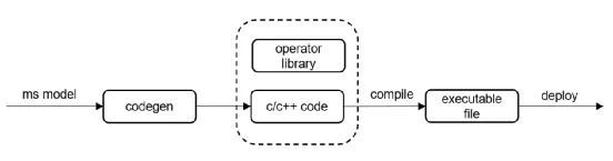 易上手:用户输入ms模型文件,并指定推理执行硬件平台,即可生成与该模型执行相关的代码、编译构建脚本。
